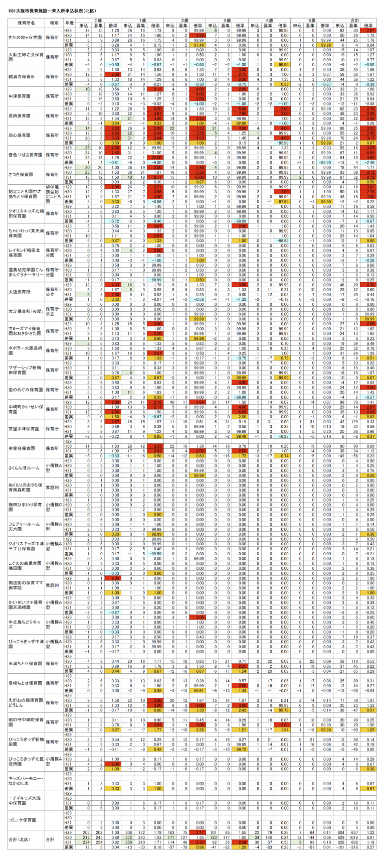 平成31年度保育所等一斉入所申込状況分析、第2回は大阪市北区です。施設毎に気になる点を駆け足で指摘しています。