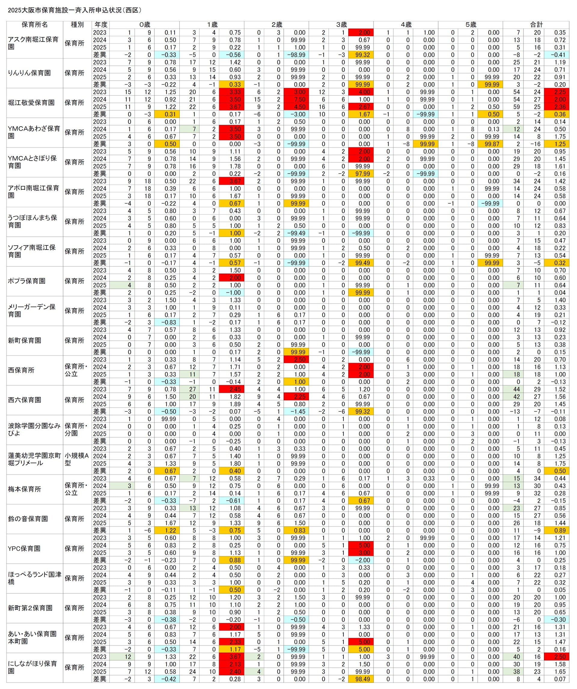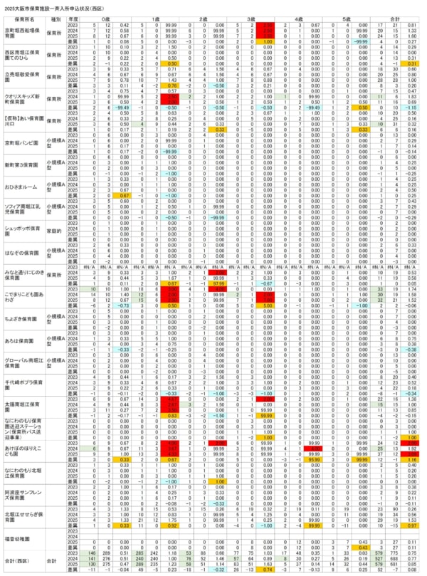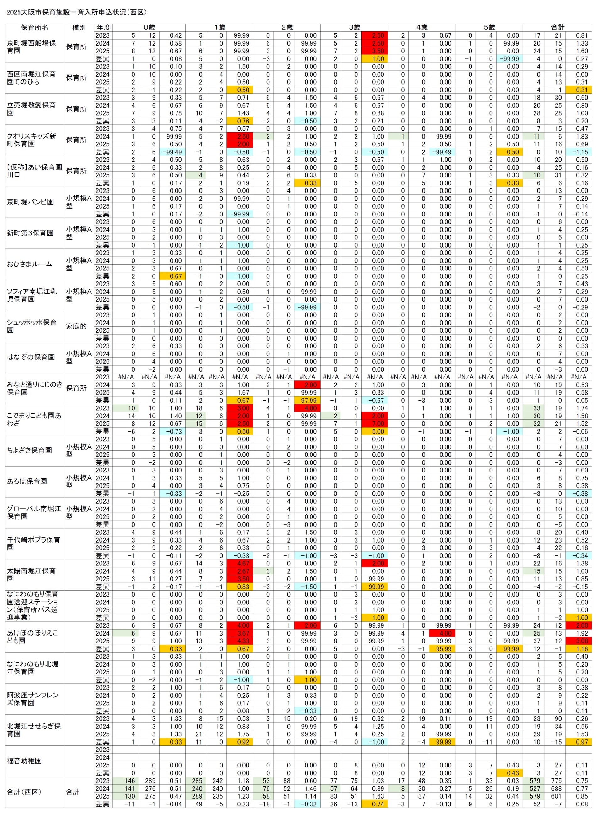 2025年度保育所等一斉入所申込状況分析、第14回は西区です。リクエストを頂きました。