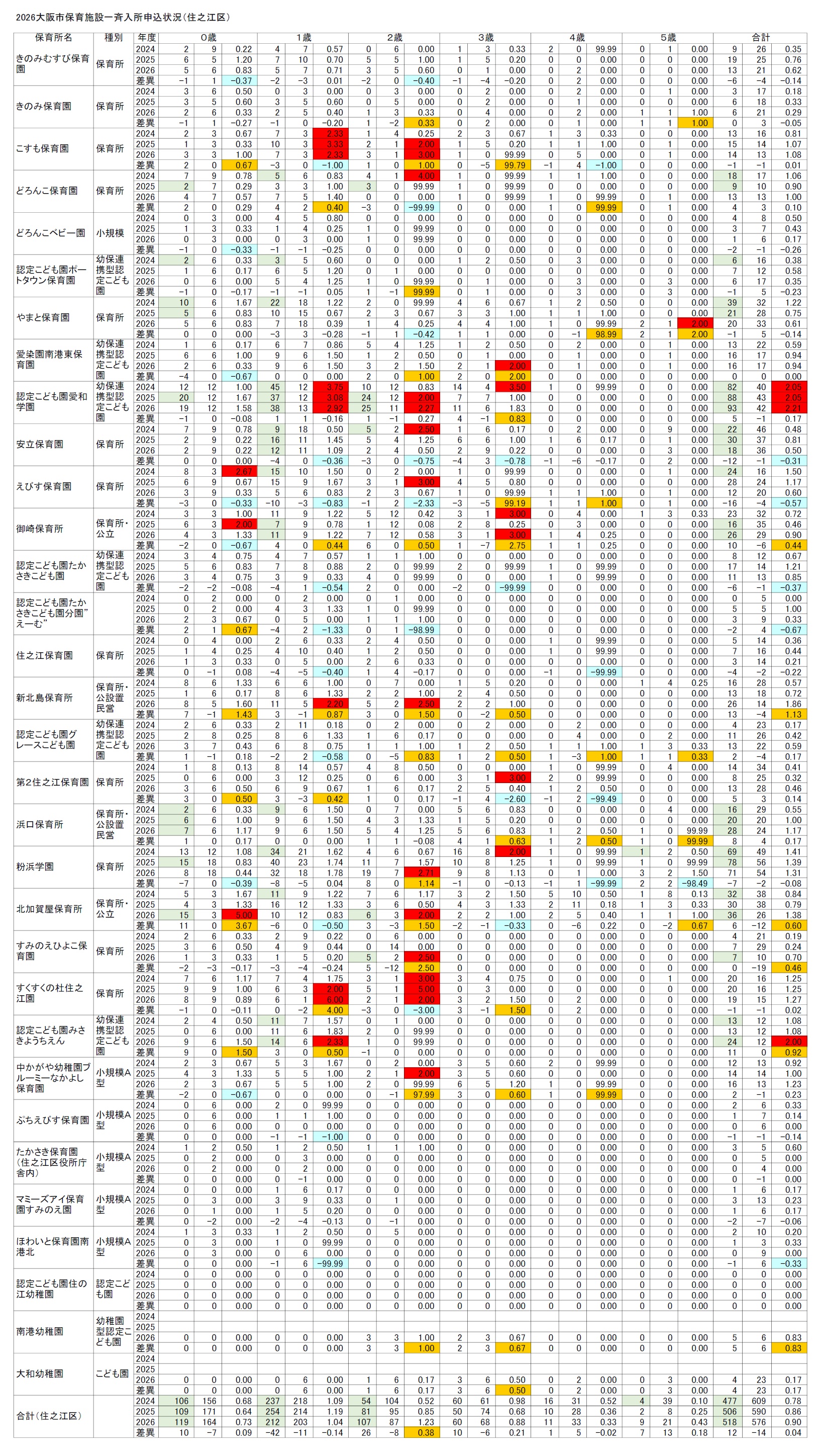 2026年度保育所等一斉入所申込状況分析、第7回は住之江区です。