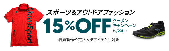 Amazonで対象のスポーツ&アウトドアファッションを購入すると15%OFFとなるクーポンが配布されています。